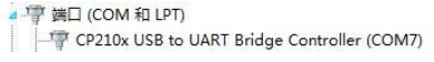 - 在设备管理器里面可以看到 CP2102 对应的 COM 口。例如下图所示是 COM7,用户以自己 PC识别到的 COM 口为准。